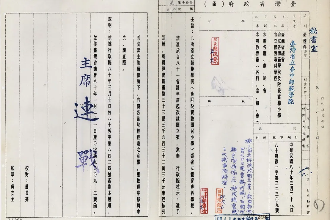 | 文號 | 臺灣省政府 80 年 3 月 28 日八十府教一字第 32309 號 函 |