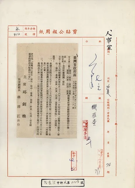 | 文號 | 臺灣省政府 76 年 6 月 26 日七六府教一字第 53126 號 |